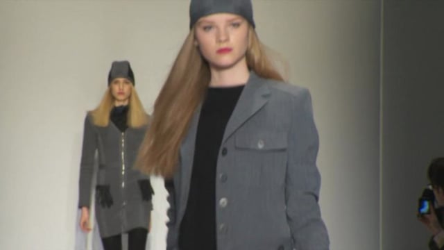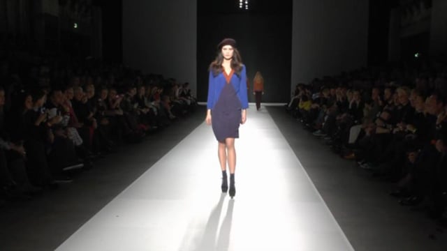 Fabrics are wool ottoman, satin, velvet, silk lurex and for the voluminous coats the designers used double woven satin, mohair and wool boulclé. The colours are bold combinations of deep purple and royal blue, arcade green with black and a combination of skin tones.